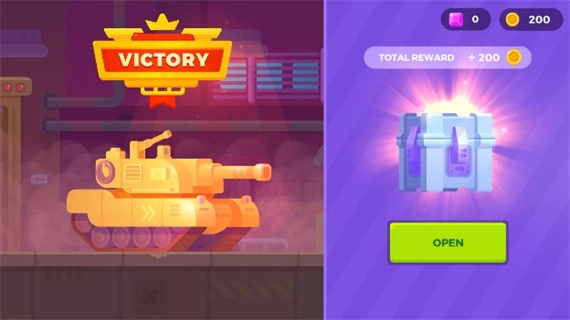 设有丰富多样的地形关卡,每张地图都需要寻找有利的战斗位置。战斗胜利后可获得金币奖励,用于强化坦克属性、解锁新部件,实现持续的战斗成长。