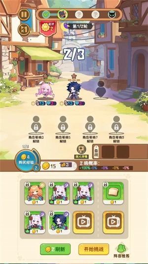 3、招募好角色后可以让角色上阵,选好上阵角色后点击开始挑战。