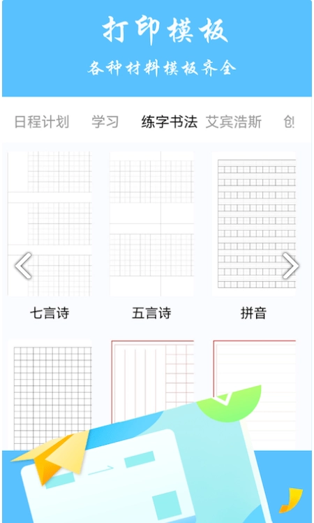 2、练字书法,使用软件还可以打印一些练字需要用到的纸张,提供了打印模板供用户用;