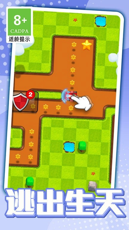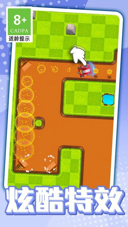 开车时用手指在屏幕上左右滑动来控制方向,转弯得提前做好准备,要是突然改变方向很容易撞到墙,这样会耽误时间。