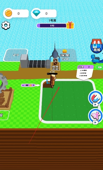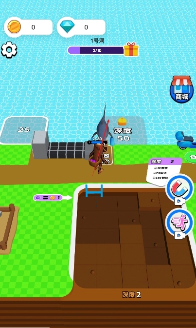 玩家的核心目标是持续向下挖掘,开启隐藏的特殊矿区与珍稀矿石。与此同时,借助合理分配资源来升级工具和属性,从而提升挖矿效率。