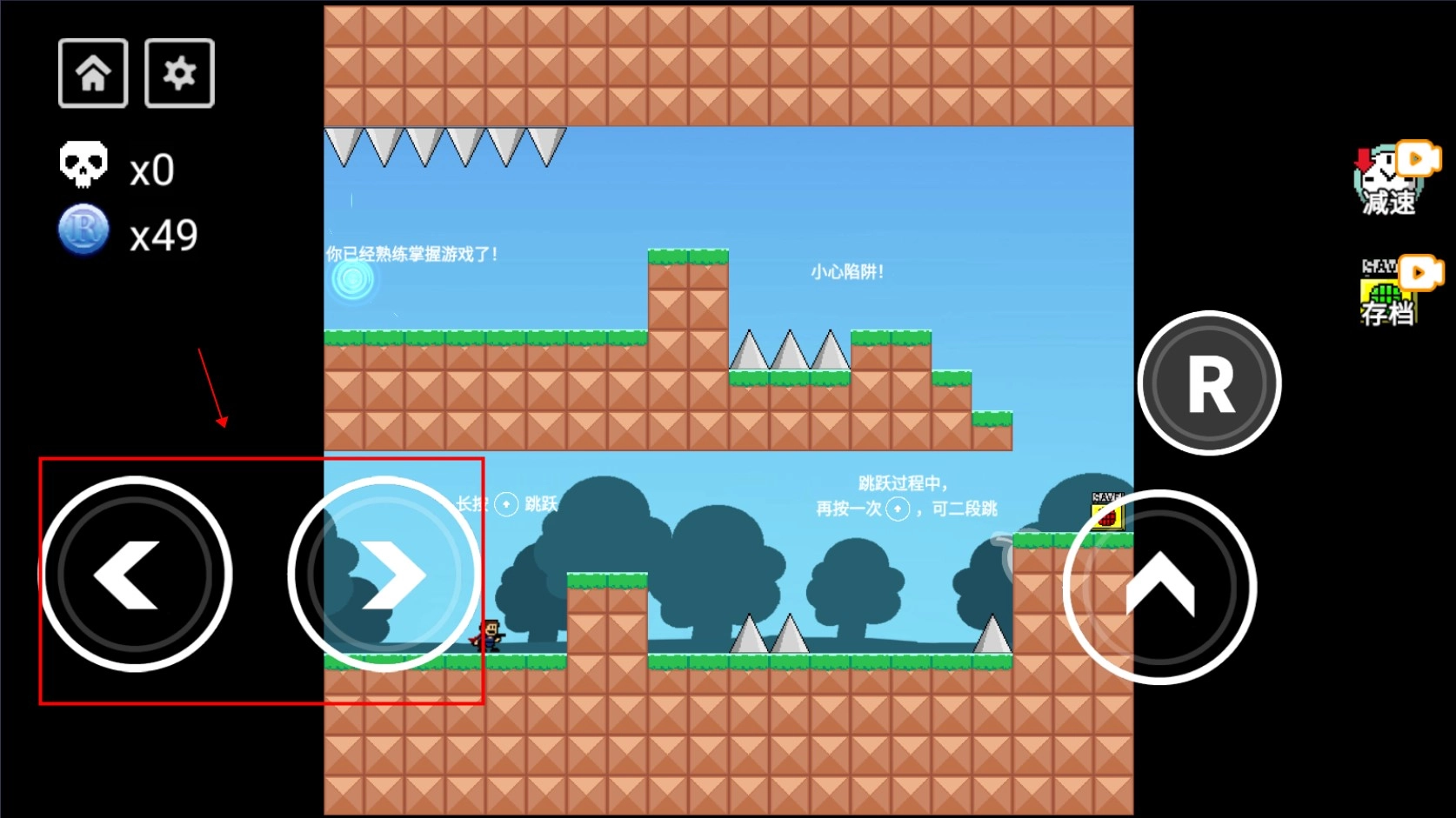 - 打开全民iwanna手机版后,进入游戏后,使用左右箭头进行移动。