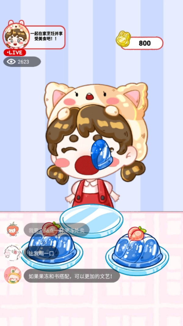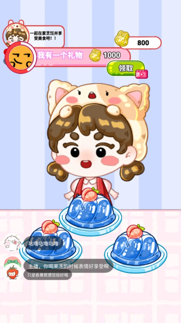 在直播过程中接收粉丝赠送的礼物,以此积累人气值。当人气达到相应标准后,就能解锁新的果冻品类、特效道具或是场景,从而让吃播内容的呈现形式变得更加丰富多样。
