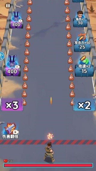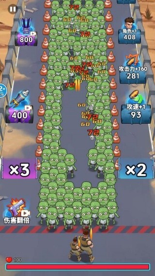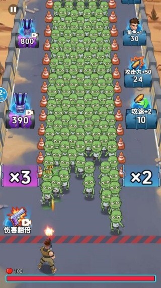 2、接着就会有大量的僵尸不断向你靠近,玩家就需要移动角色不断的左右来回射击。