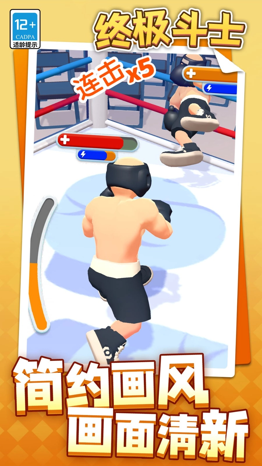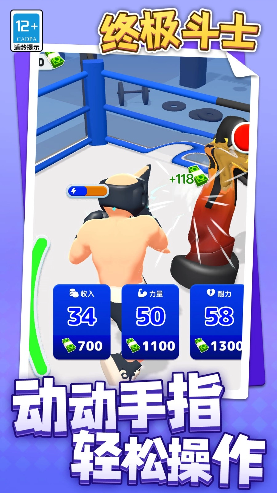 《终极斗士》是一款能点燃你热血的格斗对战游戏。在这里,你将化身拳击手,踏上一段布满挑战的格斗征程。你可以通过击打沙包来积攒财富,再用这些钱购买专业的拳击装备,以此增强自身实力。之后,你就能去挑战各路职业拳击手,沉浸在热血澎湃的拳击世界里,伺机发动进攻,尽情感受格斗的独特魅力。