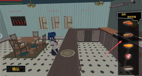 操控角色前往食堂,选择食物,点击确认。