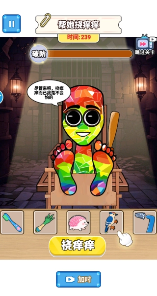 以钻石木棍人挠痒痒为例,你需要借助各类道具,协助她完成挠痒痒这件事。