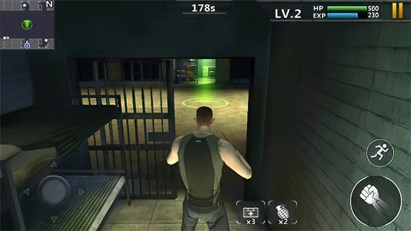 值得一提的是这款游戏只要开始任务就会有一个3分钟的时间限制,如果我们在3分钟内没有达到指定要求的话,就会招来一大堆狱警,结果就是GG,因为正常情况下开始的时候那些普通的狱警都没用武器的,但是招引来的狱警都会拿着警棍,而且生命值也会有很大的提升,最恐怖的是一次性会来3个狱警,这个是完全没有办法逃跑的,而且这款游戏普遍有一个特点,就是攻击都是锁定的,也就是只要那些狱警攻击了无论我们怎样都会直接受到伤害,所以想利用那种翻滚来躲避狱警攻击的小伙伴来说那样做是徒劳的。翻滚的正确用法就是为了配合潜行,而且使用翻滚整体来说移动速度会得到很大的提高,要是想要迅速逃离战场的话可以使用翻滚来迅速逃离战场。