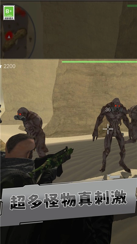 切换枪战模式,手持枪械,瞄准冲来的外星怪物,快速射击消灭。