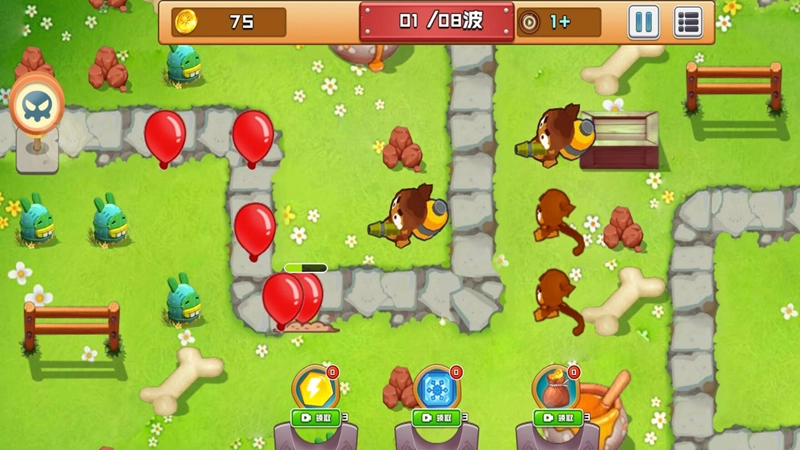 3、不同猴子拥有独特技能,猴子能召唤援军协助防守,玩家需要合理安排猴子的出场时机,利用其技能扭转战局。