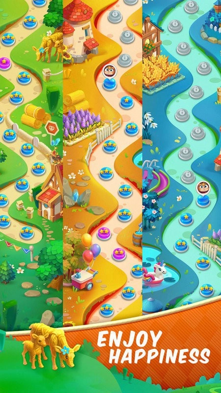 玩家可以借助锤子、魔法果实这类道具来清除较难突破的障碍,这能增加游戏的策略性;而合理运用这些道具,还能让关卡通关变得更轻松。