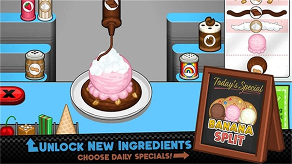 老爹冰淇淋店hd版是一款模拟经营类游戏,玩家们将经营一家冰淇淋店,在这里根据顾客的口味制作产品,解锁新的口味和食材,制作更多美味的冰淇淋,游戏的自由度超高,玩家们可以自由的制作各种的冰淇淋,全程参与冰淇淋的制作,按照规定的事件完成制作就能够获得丰厚的奖励,玩家们可以发挥自己的创造力,完成更多的挑战解锁更多的内容。