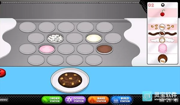 4、根据右侧的菜单选择先制作饼干,选择好饼干后,并为饼干加上小料。
