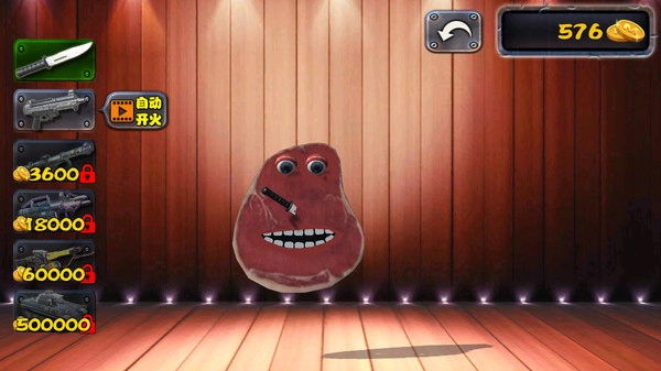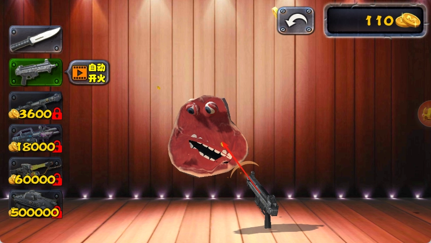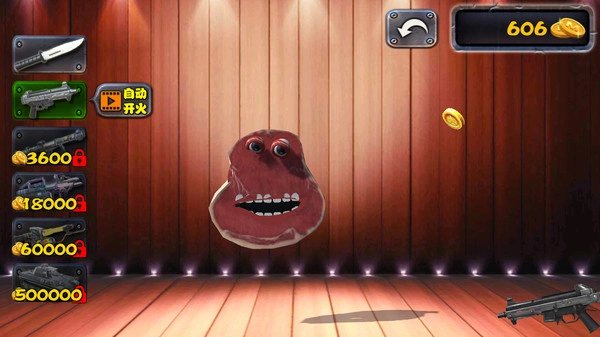 还能解锁更多工具,像枪支之类的,用它对着牛排随意射击,同样能获得金币收益。