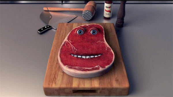 挑选一块基础款的牛排,用刀来切分它,不妨试试不规则的切法,这样能增加一些恶搞的趣味。