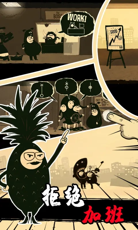 游戏还原了打印机卡纸、同事甩锅、老板突袭检查等真实职场场景,并借助卡通化的方式进行演绎,打造出别具一格的喜剧效果。