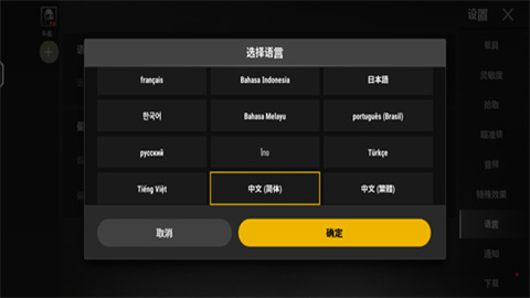 3、选择“简体中文”作为游戏语言。