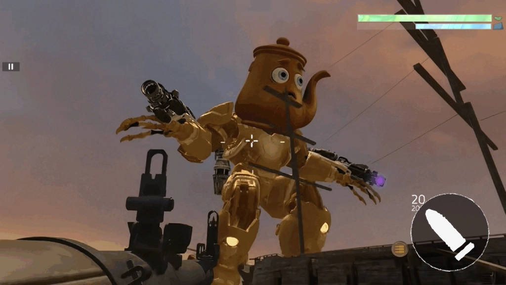 对抗巨型茶壶机甲时,需优先攻击其足部的发光区域,以此破坏它的移动机能,待其瘫倒在地后,再将火力集中瞄准头部的茶壶部位,进行高效输出以完成终结。