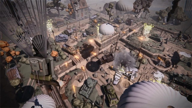 人物采用偏大头娃娃的卡通造型,但身上的细节物品遵循史实,基本严格依照二战真实单兵装具设计,未出现明显违背时代背景的神剧服装造型。光影效果运用带有怀旧感的素绘风格,更能凸显出年代氛围。