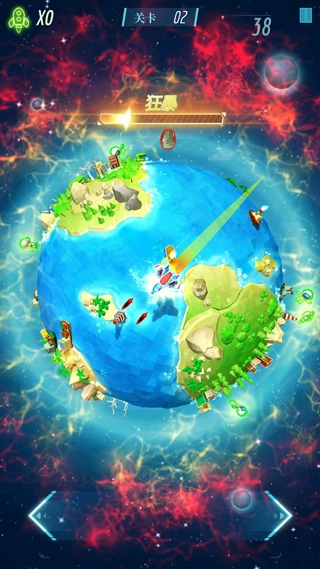 接触红色能量团可激活狂暴模式,飞船获得攻击能力,能发射子弹摧毁障碍。该状态限时,应高效清敌。