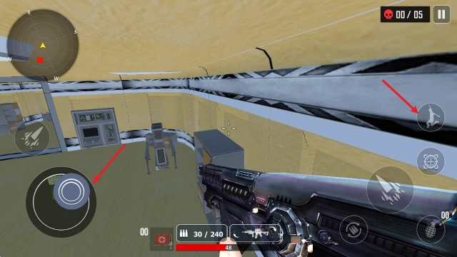 2、进入场景后,拖动左侧摇杆进行移动,右侧可以进行跳跃。