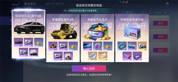 三、{福利月卡} 1月1日~1月22日期间,登录速度节即可免费领取一张月卡,若您已经是月卡用户,领取成功后将自动延长30天月卡。
