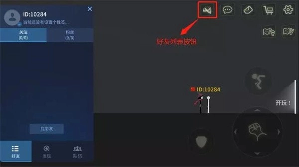 1、点击好友列表按钮,即可显示你关注的好友以及关注你的粉丝,组队列表也在这里哦!