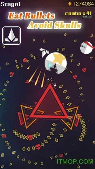 用手指触摸并拖动你独一无二的角色(Pac-Man 256),在不断变化的太空地图里巧妙地穿梭移动;主动去吃掉那些散落四处的子弹,以此来持续积攒能量和力量值。