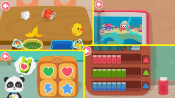 这次宝宝要变换身份,担任图书管理员。看,桌面上散乱着书籍和读者未带走的垃圾,宝宝来收拾下,点击书本,统一放进左边的书籍框中,垃圾则收进垃圾桶里吧。整理完毕,相信宝宝也学会了分类。