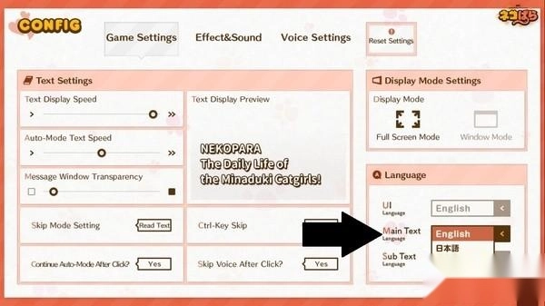 进入设置,将主要文本切换到第二种语言,返回游戏并点击推进文本,