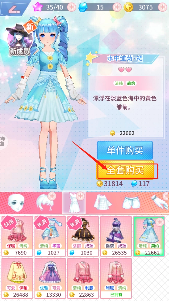 第二步:选择好服饰,选择全套购买就好啦