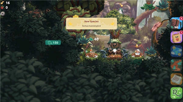 5、成年鸟将定期产出资源,利用这些资源来建造更多鸟巢或解锁新植物