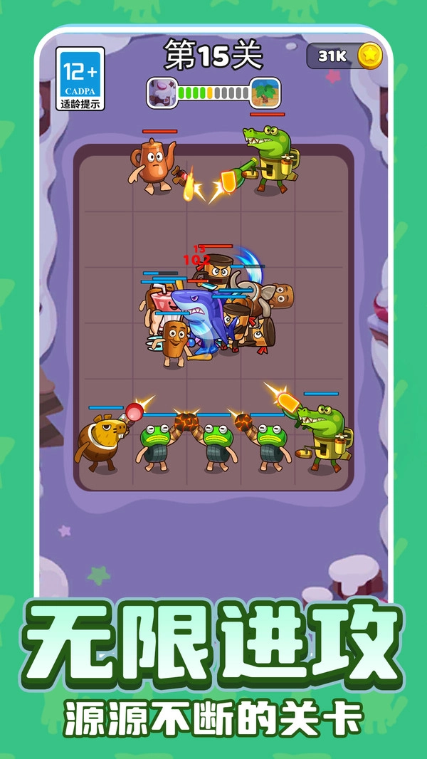游戏设有无限进攻模式的关卡体系,关卡数量持续更新、源源不断,玩家可以不断挑战进阶,有效避免因关卡数量不足而导致的游玩中断问题。
