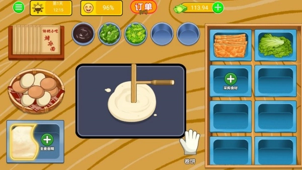 游戏里有20多种真实食材可供自由搭配,香肠、鸡柳、辣条这类配料能随心组合,你可以研发出独特口味,以此征服挑剔食客的味蕾。2、游戏采用沉浸式操作设计,把翻面、刷酱、打包这些真实制作步骤都还原了,再搭配上顾客个性化需求系统,能有效提升经营代入感。3、除了烤冷面,你还能解锁煎饼果子、手抓饼等经典小吃摊,体验多元化的街头美食经营乐趣。