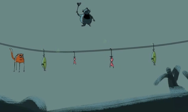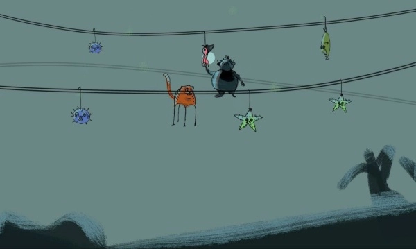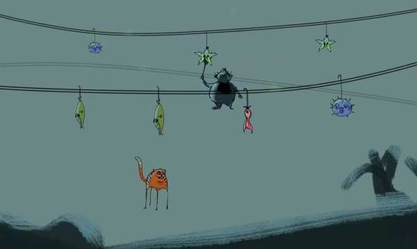 场景里分布着能够互动的道具,比如推动一个毛线球来吸引主人的注意,或是跳上开关关掉电灯以制造黑暗区域。