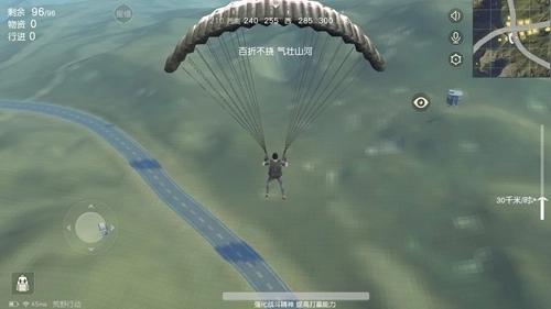 这个技巧很多玩家不知道,大部分玩家会在飞机到达降落点的正上方后跳伞,其实这样你很难能跳到降落点。正确的方法是在降落点前面就跳伞,然后按加速让自快速向前。