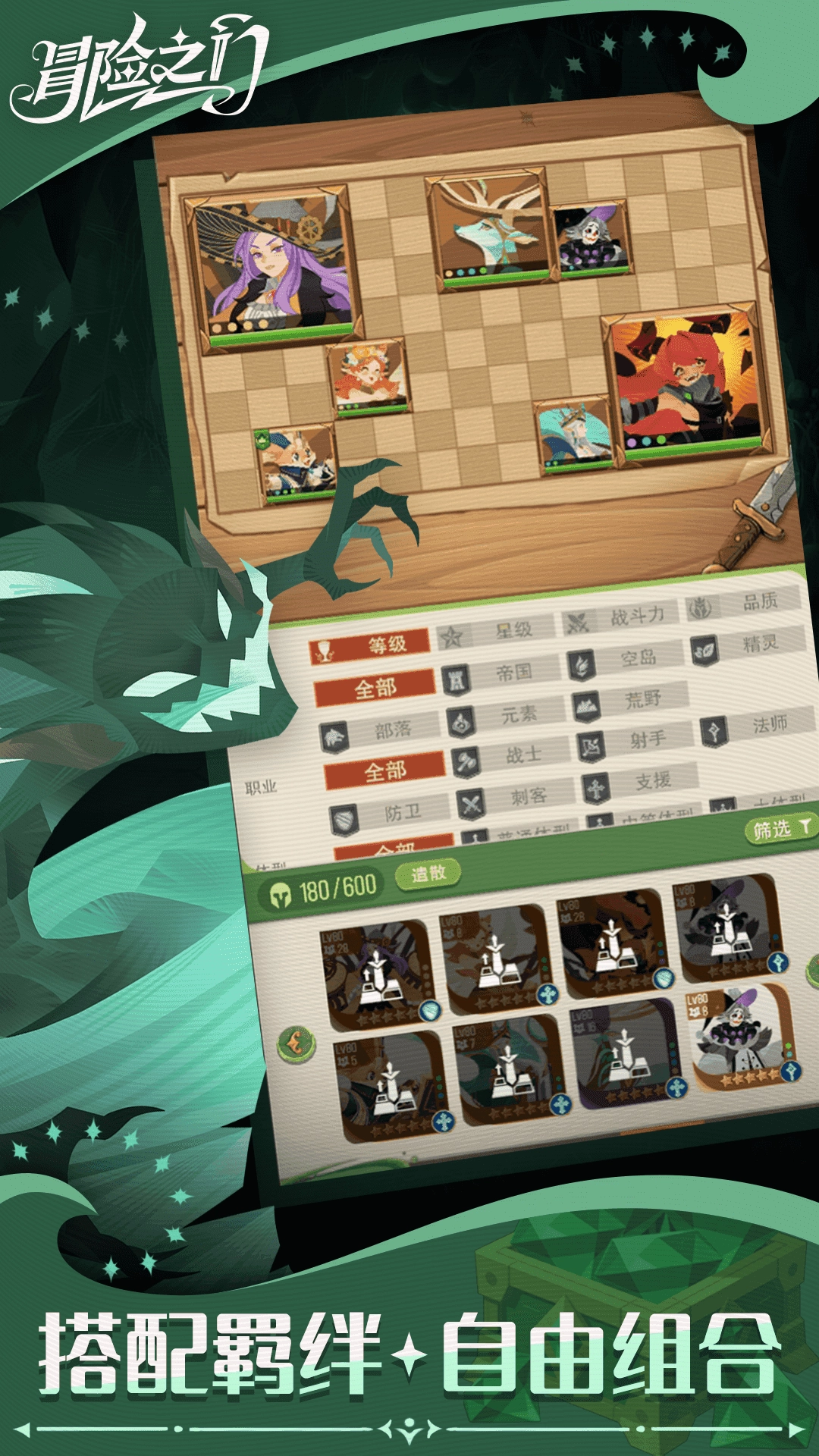 2、搭配羁绊增强战力,自由组合。