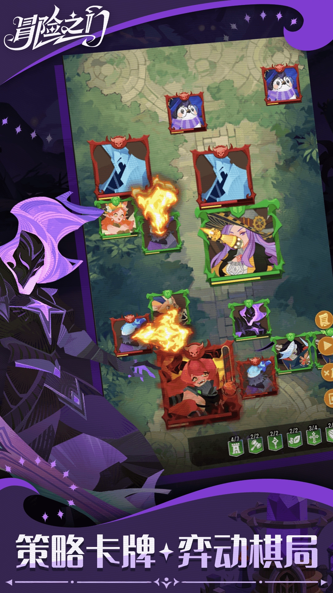 1、策略卡牌玩法元素,弈动棋局。