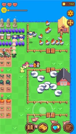 3、玩家还可以饲养各种可爱的动物,从温顺的绵羊到活泼的小鸡,更有史莱姆。