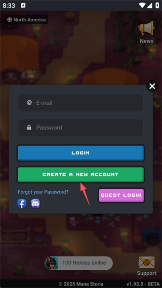 1、点击“CREAT A NEW ACCOUNT”,创建新的账号,也可以点击“GUEST LOGIN”,游客登录,可以快速进入游戏,但是无法将游玩记录保存到服务器中。