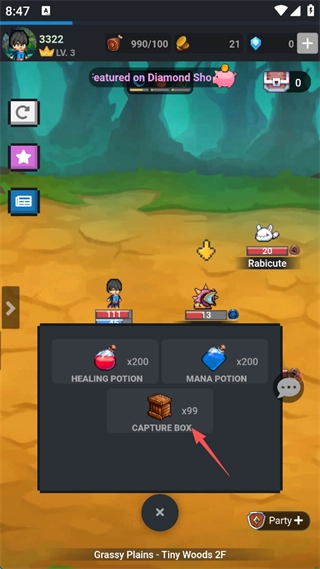 3、选择使用“捕捉箱”,捕捉箱拥有60%的成功率,多使用几次很快就能抓获了。