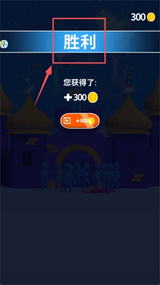 胜利之后点击橙色按钮,就能领取900金币的通关奖励,同时可以查看累计获得的金币数量(比如300金币),然后进入下一个关卡。