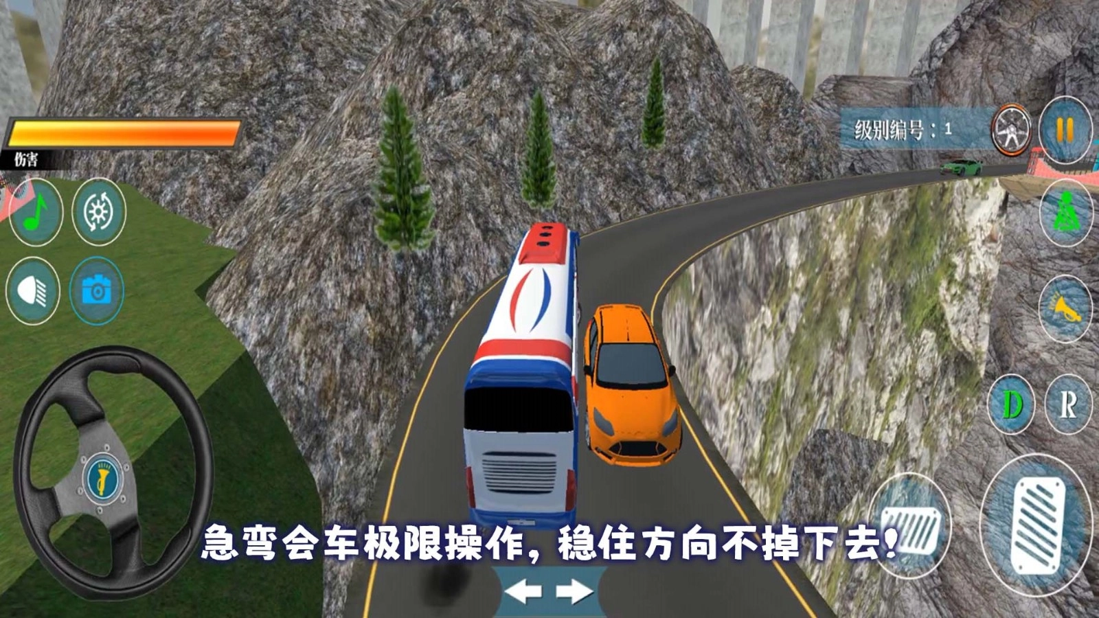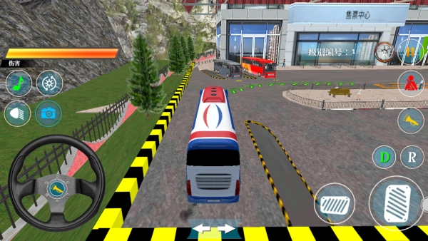 用左边的方向盘来操控转向,右边的刹车和油门负责控制巴士的移动,按照绿色虚线的指引朝着终点进发吧!