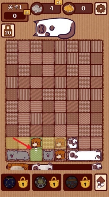 2.操作简单直观,通过滑动放置猫咪,连成整行即可触发消除