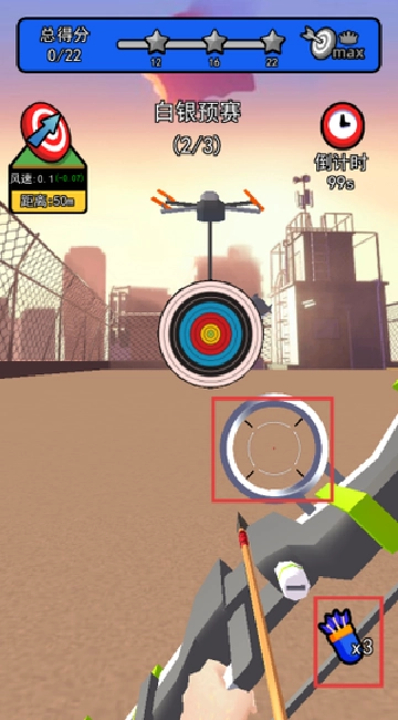 通过真实的3D效果与精准的射箭数值设定,玩家能获得沉浸式的射箭体验。风向会改变箭的飞行轨迹,遇到强风时需要及时调整瞄准方向。