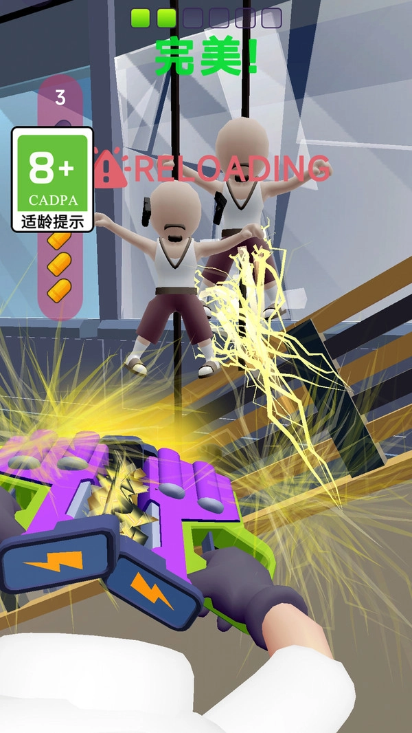 角色的视角会持续变化,玩家需要迅速调整射击角度,精准消灭所有出现的敌人。