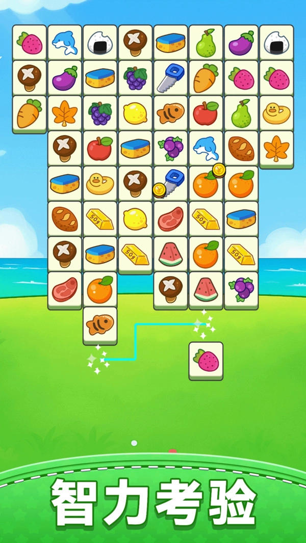 按照连连看的基础逻辑,连接相同水果时,路径转折次数不能超过两次,且不能被其他水果挡住,规则简单明了。