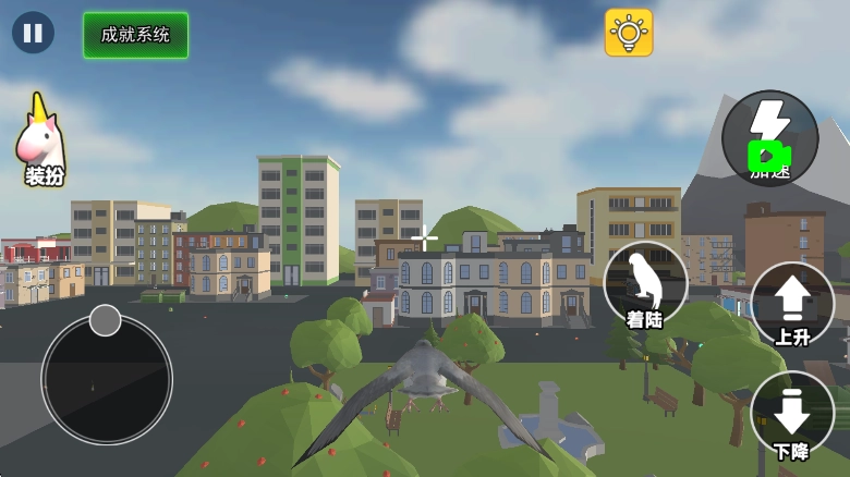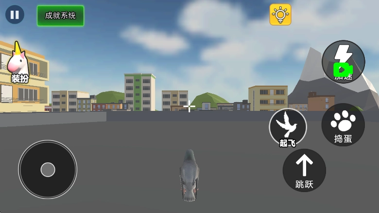 玩家将化身鸽子在城市里开启冒险之旅,具体可参照下图所示。若想查看任务列表,只需点击画面左上角的“成就系统”即可。