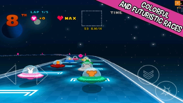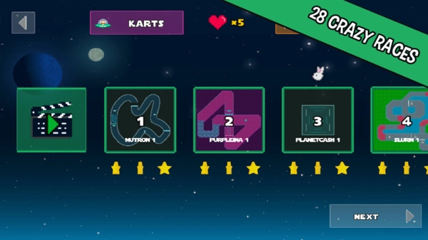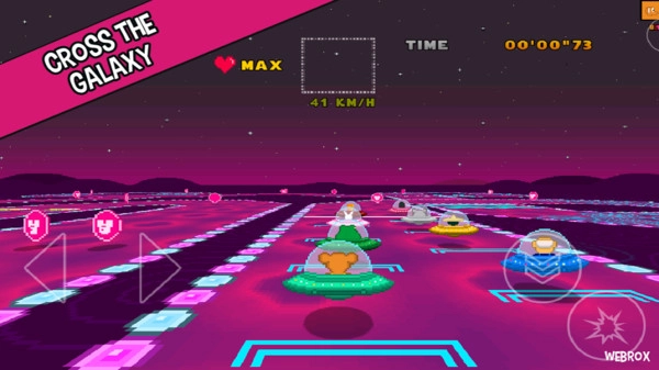像素卡丁车2是一款有趣的像素风冒险游戏,玩家们会用自己的卡丁车换取太空船,去追寻再次逃脱的Froggy!快来体验28场循序渐进的比赛,其中还包含奖励关卡,尽情享受游戏乐趣吧!