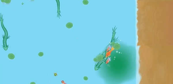 如果是手残党的话,可以考虑一直苟着来通过小蝌蚪到锦鲤的阶段,不要到处乱跑,尽量贴着沙滩游就可以了,贴着沙滩走还有减速的效果。如果可以用大屏、横屏玩,那么难度更是直接减半了。